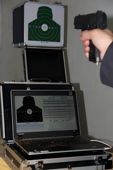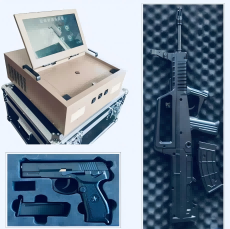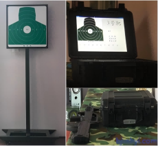 模擬訓(xùn)練系統(tǒng)由1:1自動95式步槍(彈夾可拆卸)及1:1自動92式手槍(彈夾可拆卸)激光發(fā)射器、報靶控制終端(也是報靶顯示器)、軍用胸環(huán)靶四部分(“四件套”)組成,全部無線連接,無需使用攝像頭(對光線幾乎不受影響),只要通電(市電或移動電源)就可以正常使用了。可在10—200米采用相對應(yīng)大小的靶面進行模擬射擊訓(xùn)練。
